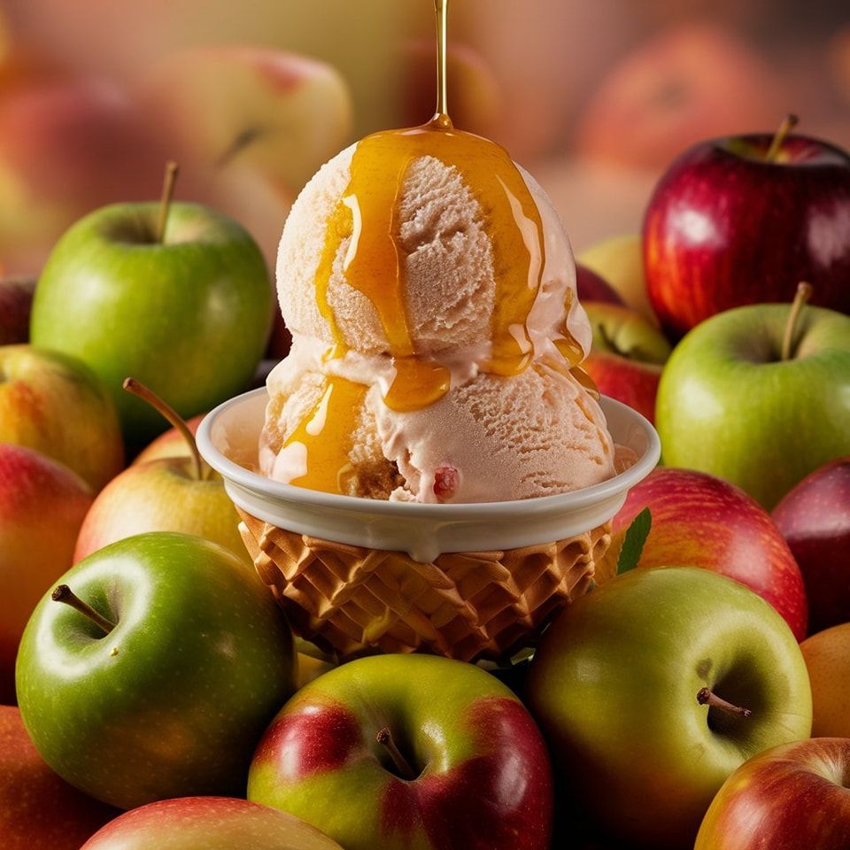 Savor the comforting taste of crisp apples in our smooth and creamy apple ice cream. Made with real apple puree and a hint of cinnamon, each scoop delivers a refreshing burst of fruity sweetness perfectly balanced with rich, velvety cream. This unique blend captures the essence of orchard-fresh apples in a cool, indulgent dessert. Whether enjoyed on its own, topped with caramel sauce, or paired with warm pastries, our apple ice cream is a delightful treat that brings a taste of nature’s freshness to every bite.