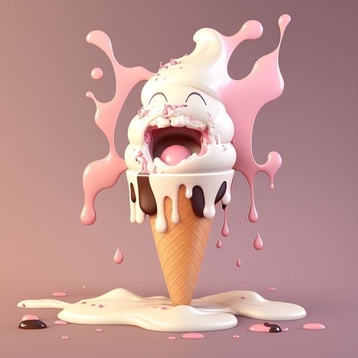 A joyful cone of strawberry and vanilla ice cream with chocolate drizzle and a playful burst of creamy sweetness.